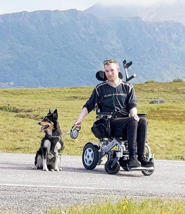 En ganske vanlig fyr med litt ekstra utstyr (rullestol), som: